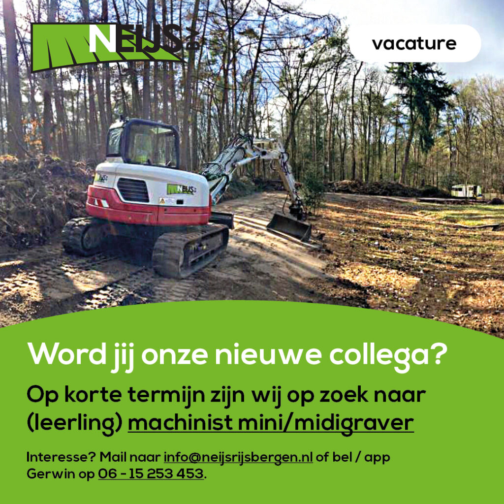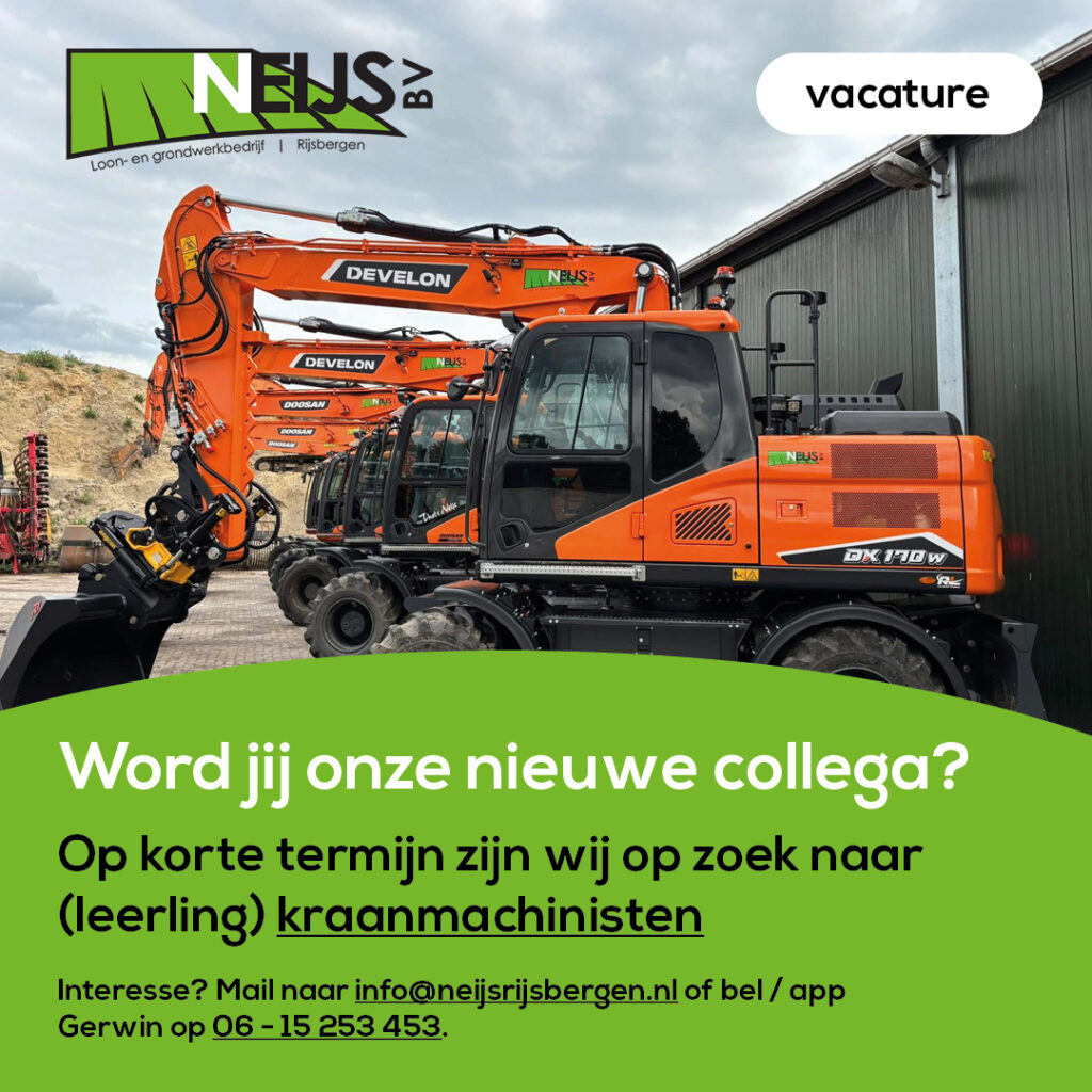 Ben jij iemand die graag buiten werkt, verantwoordelijkheid neemt en goed kan omgaan met machines? Dan pas jij perfect bij Neijs Rijsbergen!